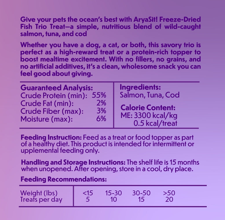 AryaSit! Freeze-Dried Fish Trio Treat for Dogs & Cats