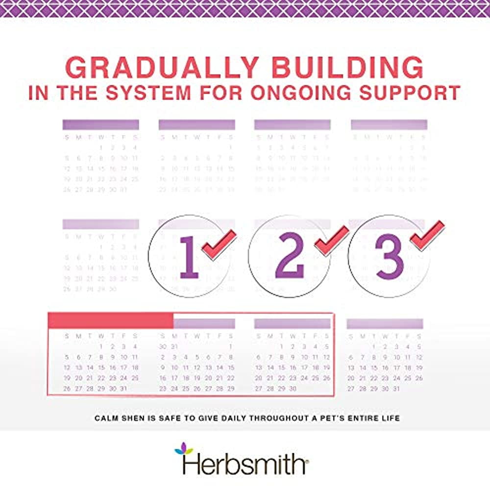 Calm Shen by Herbsmith is an all-natural supplement designed to help dogs and cats maintain calmness and balanced behavior. Ideal for pets exhibiting nervousness, hyperactivity, or discontentment, this herbal blend supports a normal and relaxed disposition without causing drowsiness.