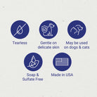 • Soap-free, sulfate-free formula—safe for sensitive facial skin and coats