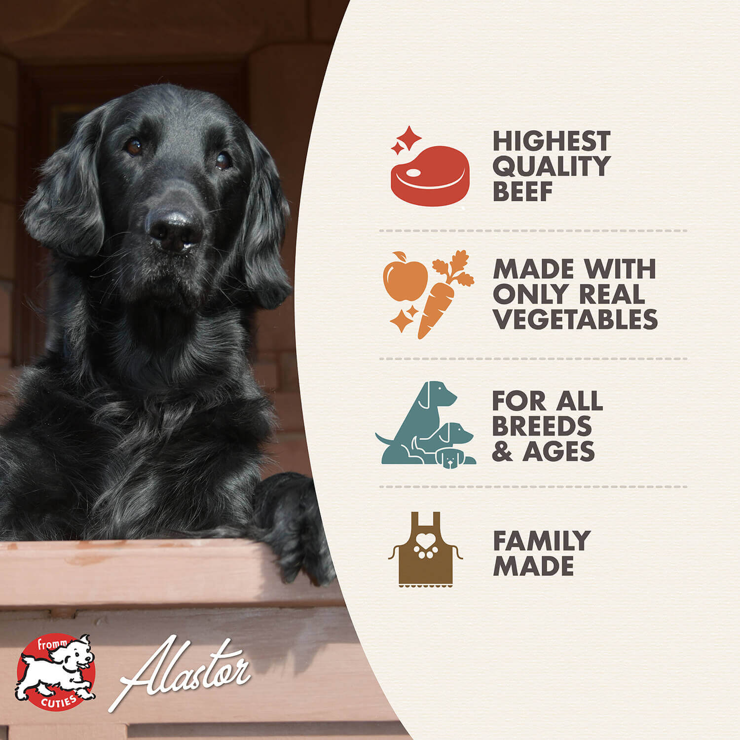 Frommbalaya Beef, Rice, & Vegetable Stew offers a delicious and nutritious meal for your dog. This recipe combines beef, potatoes, carrots, and rice, simmered in a savory broth to create a hearty stew that's perfect for dogs of all life stages.