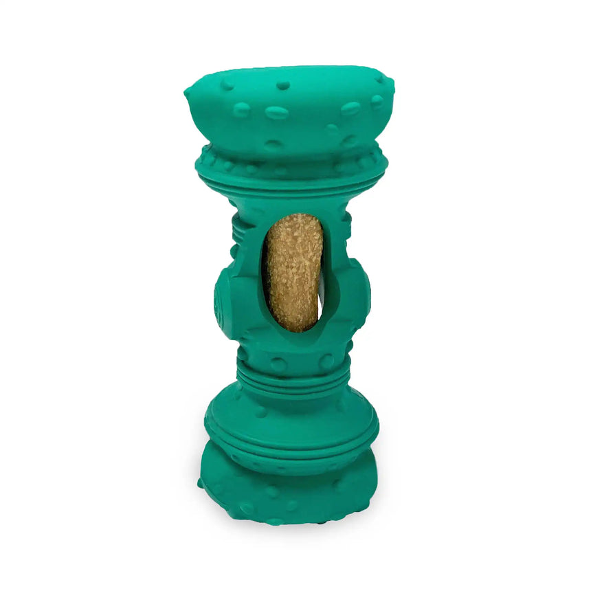 Enhance your dog's chewing experience with the Jughead Super Chew Toy, designed to slow down chew time and extend the life of treats. This innovative toy features a unique design that can hold various types of chews, from bully sticks to celery, providing a dynamic and stimulating experience for your dog.