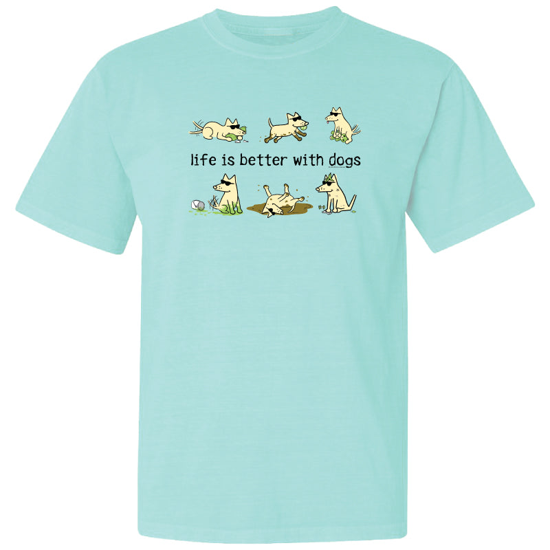 Love dogs? Show it off in the Life Is Better With Dogs Classic T-Shirt. Crafted from 100% cotton for comfort and durability, this Flo Blue top with Teddy being Teddy is sure to make anyone laugh.