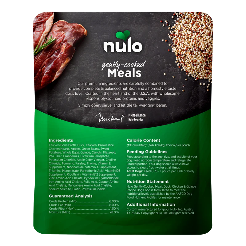 Nulo Gently-Cooked Meals DUCK, CHICKEN, & QUINOA Dog Food Pouches