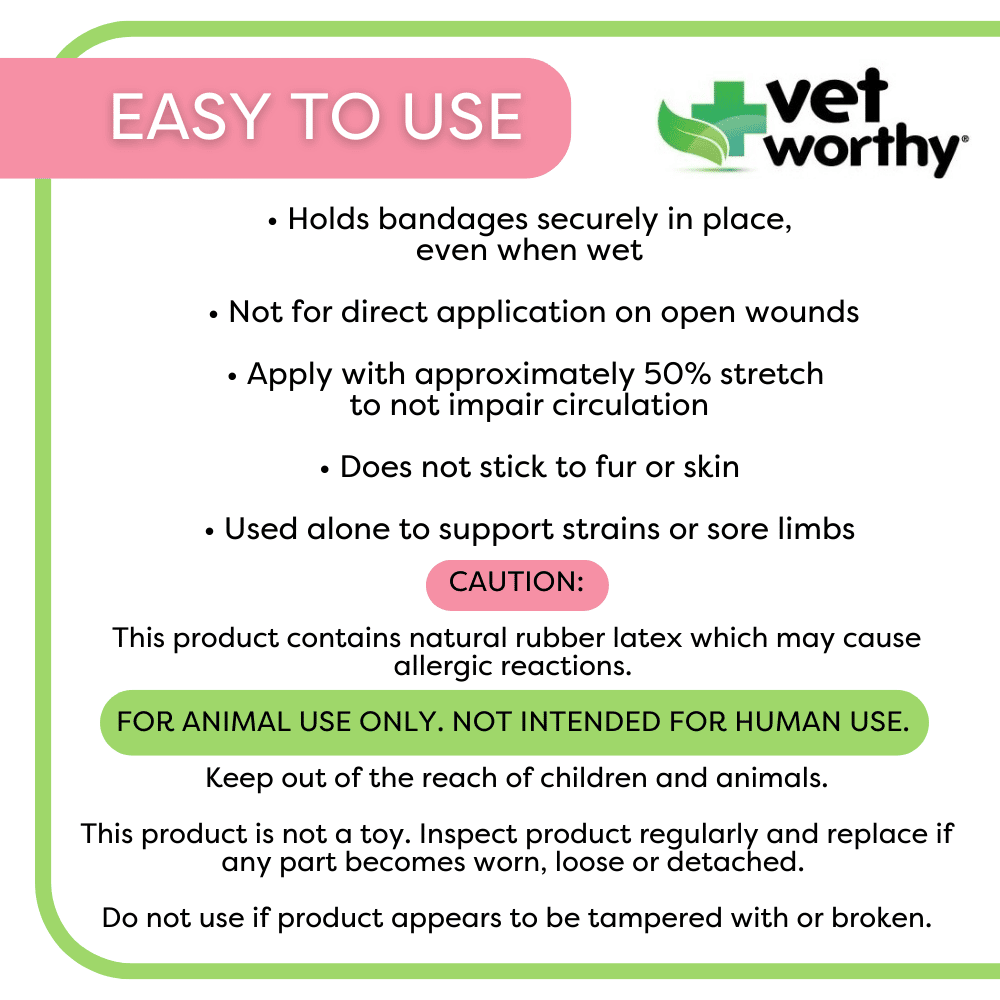 • Adhesion: Self-adhering design for easy application and removal without sticking to fur.