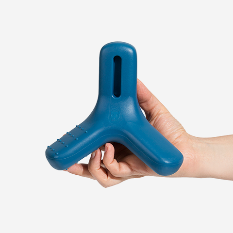 The Tripod dog toy is a durable chew toy for large dogs. Made of 100% nylon, this dog toy has a shape that is easy to grip and is bacon scented for added fun. The textured surface helps clean you dog's teeth. Add your dog's favorite treat to the cavity to keep them engaged. Suitable for large and extra large dogs.