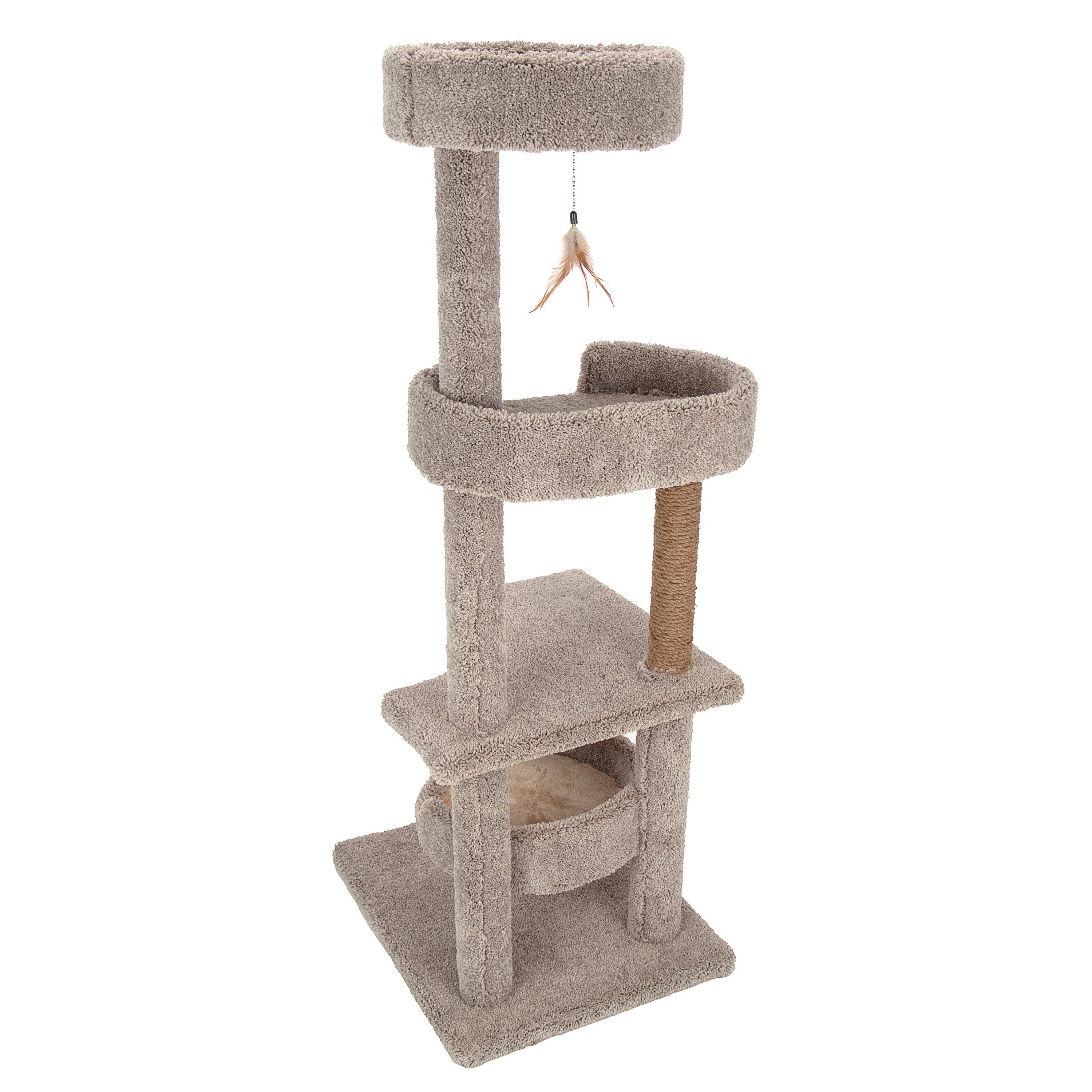 - Features: Includes a soft, plush bed, heavy-duty carpet, a rope scratching post, and a playtime feather toy.