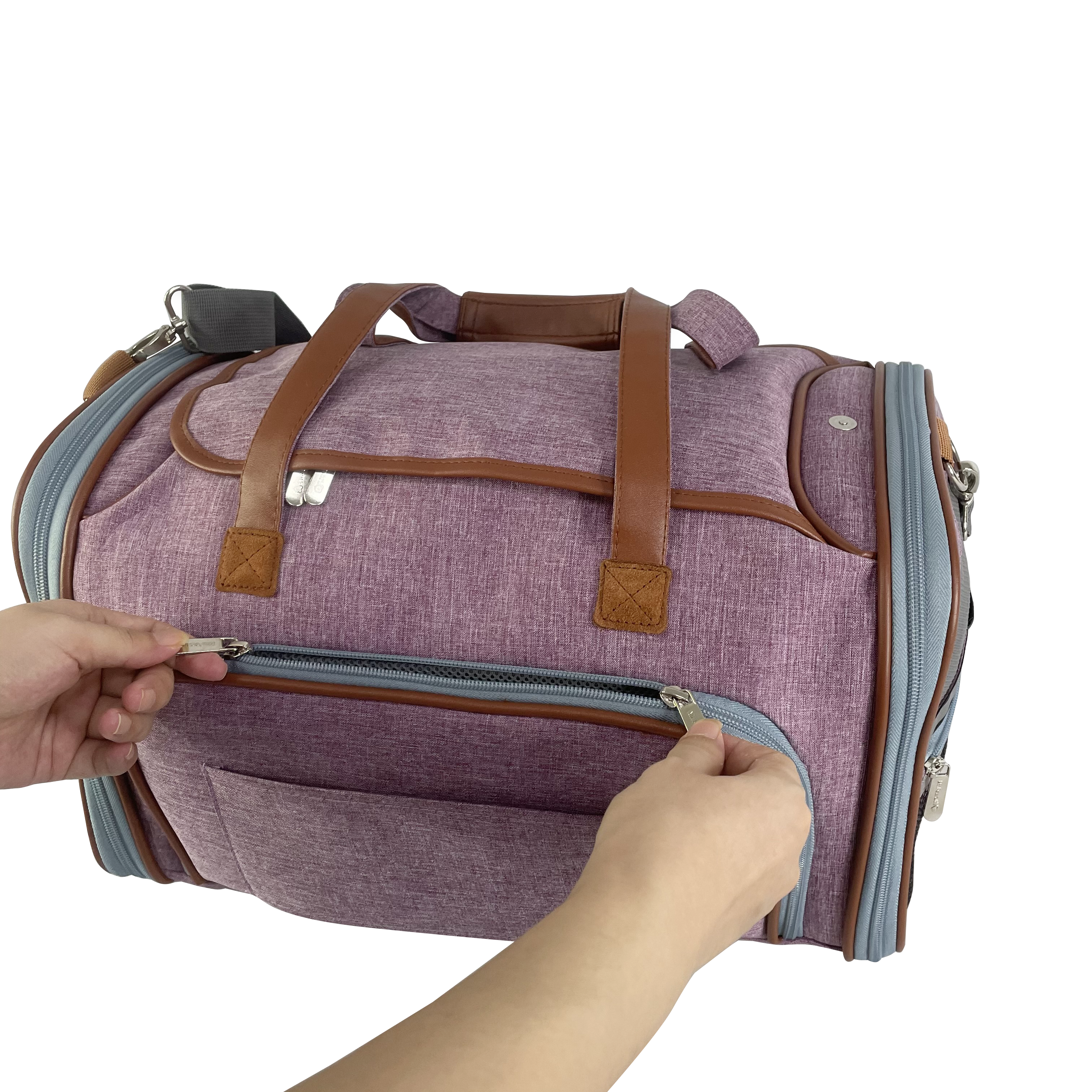 - Premium Brand Auto Self Locking Zippers for Safety and Eliminating the need for fragile clasps as the tote cannot be pushed open by your pet from the inside