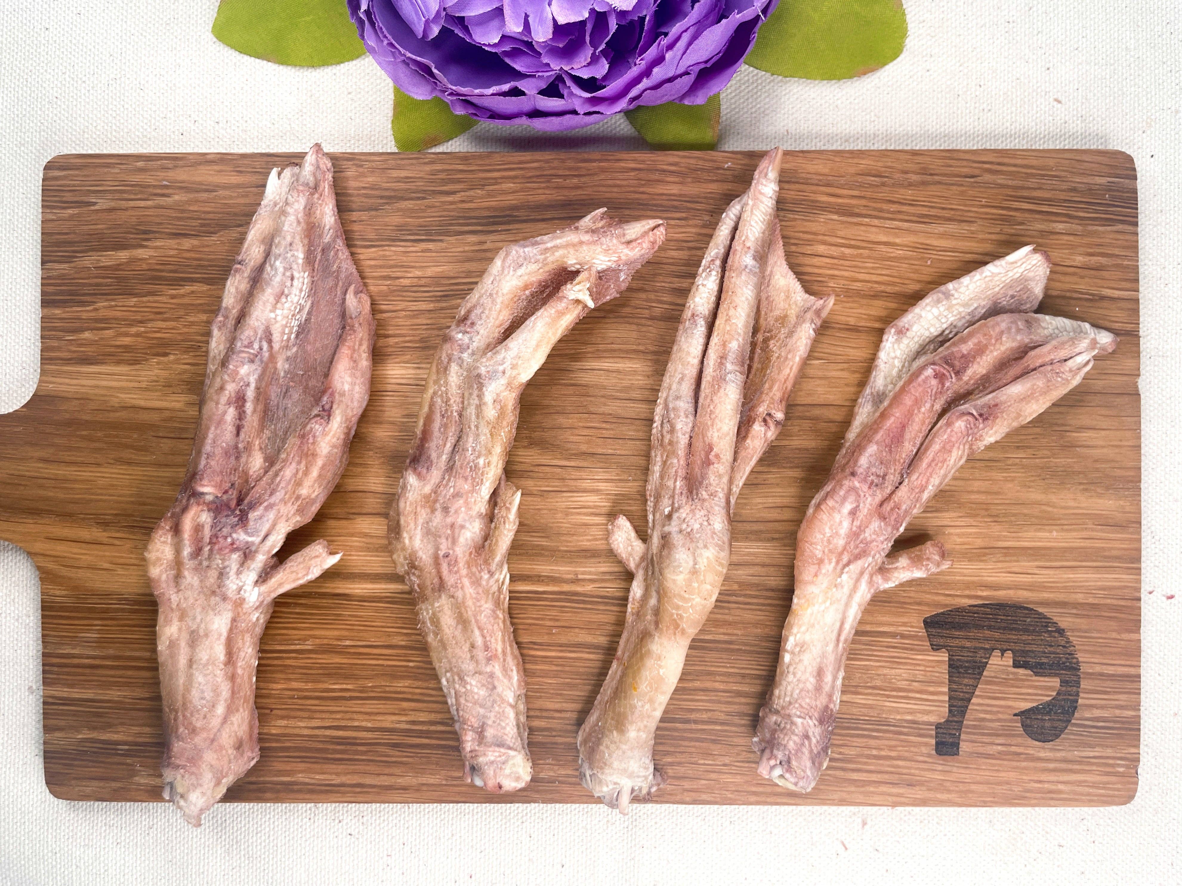 All-natural single-ingredient treats made from duck feet from white Pekin ducks raised without added antibiotics or hormones*.