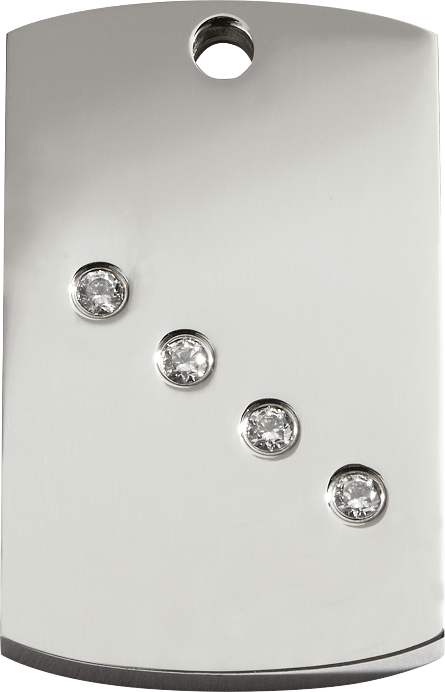 Add a touch of elegance to your pet's collar with the Red Dingo Diamante Pet ID Tags. Crafted from 3mm-thick mirror-polished stainless steel and adorned with cubic zirconia gemstones, these tags combine durability with sophisticated style.