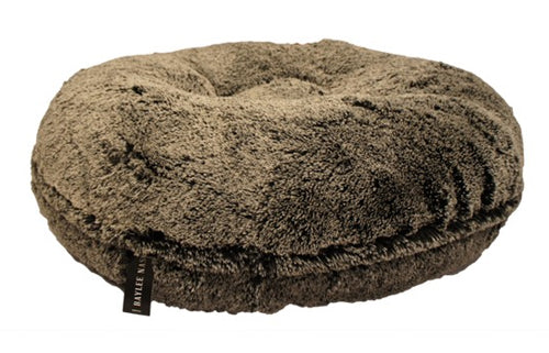 Black Frosted Shag Round Beds have ultra soft polyester machine washable exterior fabrics with water resistant lining covering the interior bedding.