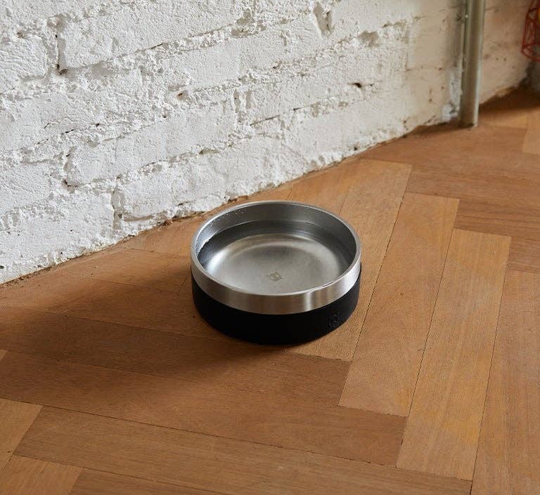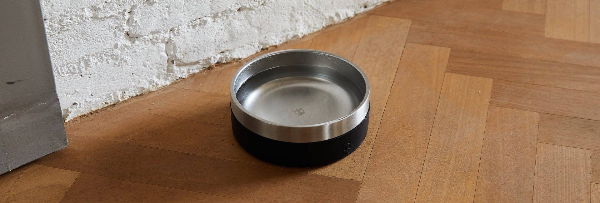 Built tough - our Tuff Bowl isn't your ordinary pet bowl. This dog bowl is made from super tough double walled stainless steel that's corrosion and rust resistant. It holds up to 5 cups of water or kibble and is super easy to clean. Just put it in the dishwasher (top rack recommended) and it's as good as new. The Tuff Bowl Black has a silicone base that prevents it from moving around while your dog is drinking or eating from it.