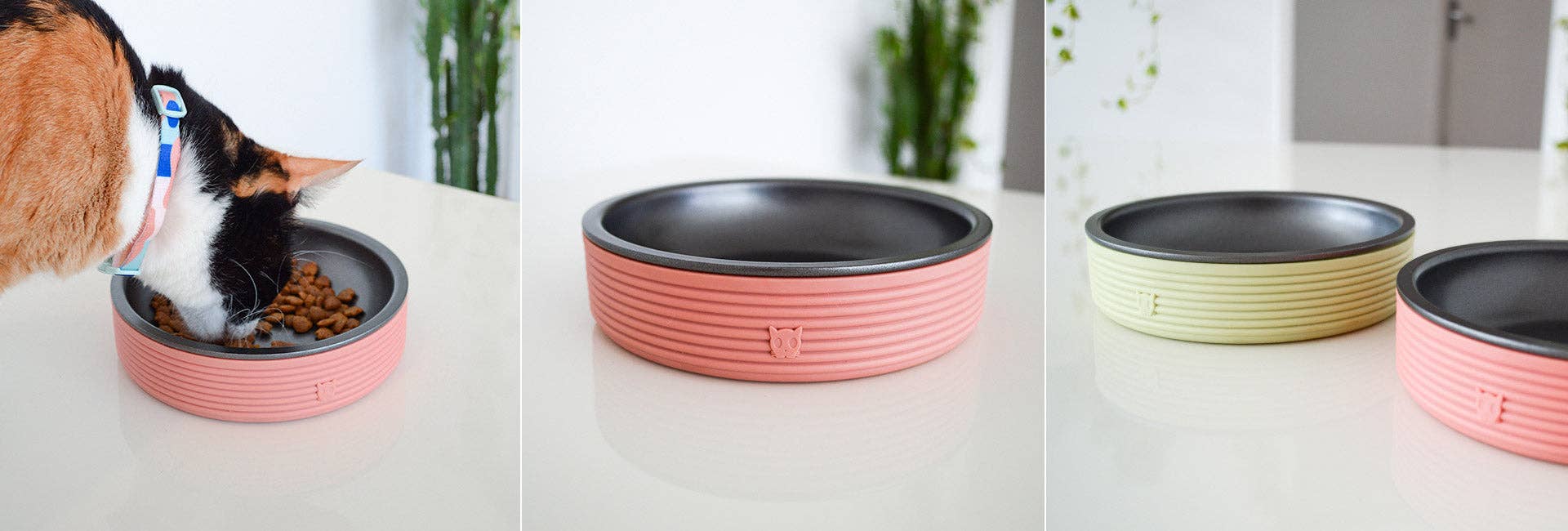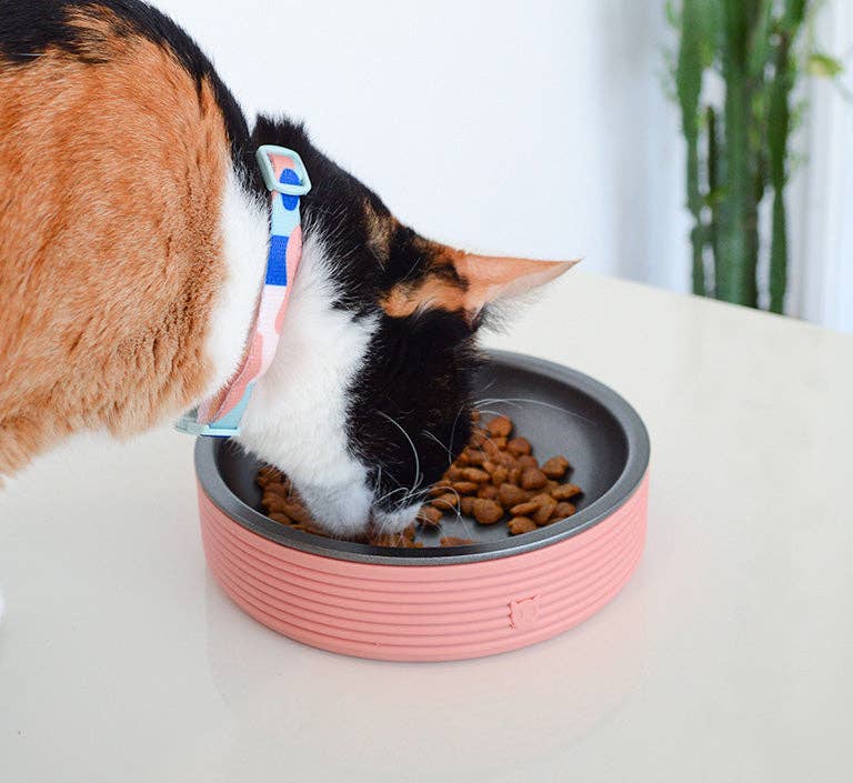 The Terracotta Duo Bowl was designed to enhance your cat's meal experience. This whisker-friendly cat bowl has a non-stick dish that's dishwasher safe (top rack) and has a rubber base that keeps the bowl from slipping when being used.