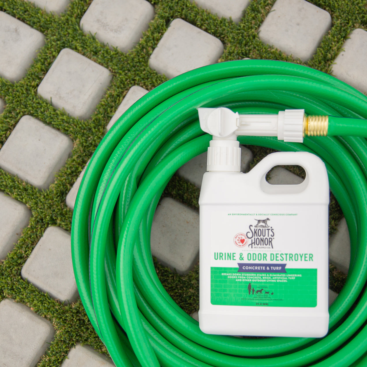 Skout's Honor Urine & Odor Destroyer for Concrete & Turf is a powerful, eco-friendly solution designed to eliminate stubborn pet stains and odors from outdoor surfaces. Ideal for use on concrete, brick, artificial turf, outdoor furniture, and other water-safe areas, this product ensures your outdoor spaces remain fresh and clean.