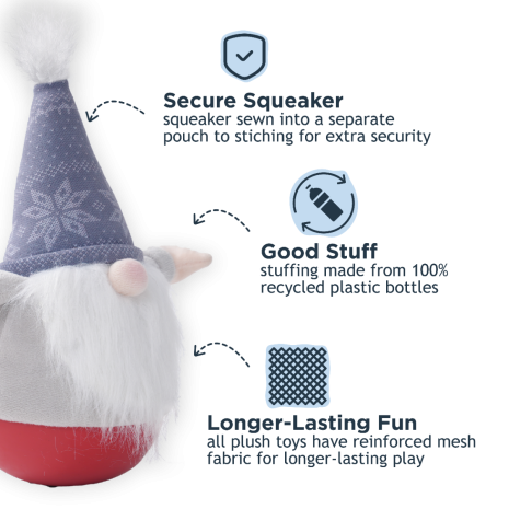 Captivate your dog’s attention with the Gnome Roly Poly Toy — a 11″ plush wobbler that rocks, rolls, and rights itself for endless interactive fun.