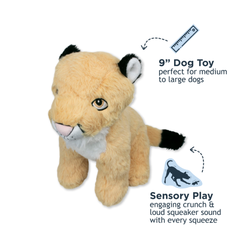 Enhance your dog's playtime with the Crunch Mountain Lion Dog Toy, combining sensory stimulation and comfort in one durable design.