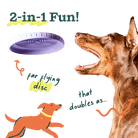 - Modes of Use: Fetch Mode: Toss like a standard disc for active fun. Lick-Mat Mode: Flip it over and spread your dog’s favorite treats, peanut butter or kibble, into the ridged surface for enrichment.