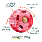 - Long-Lasting Dispenser: Unscrew the bottom, fill with kibble, treats or frozen puree, then let your dog work it — great for 20-30 minutes of engagement.