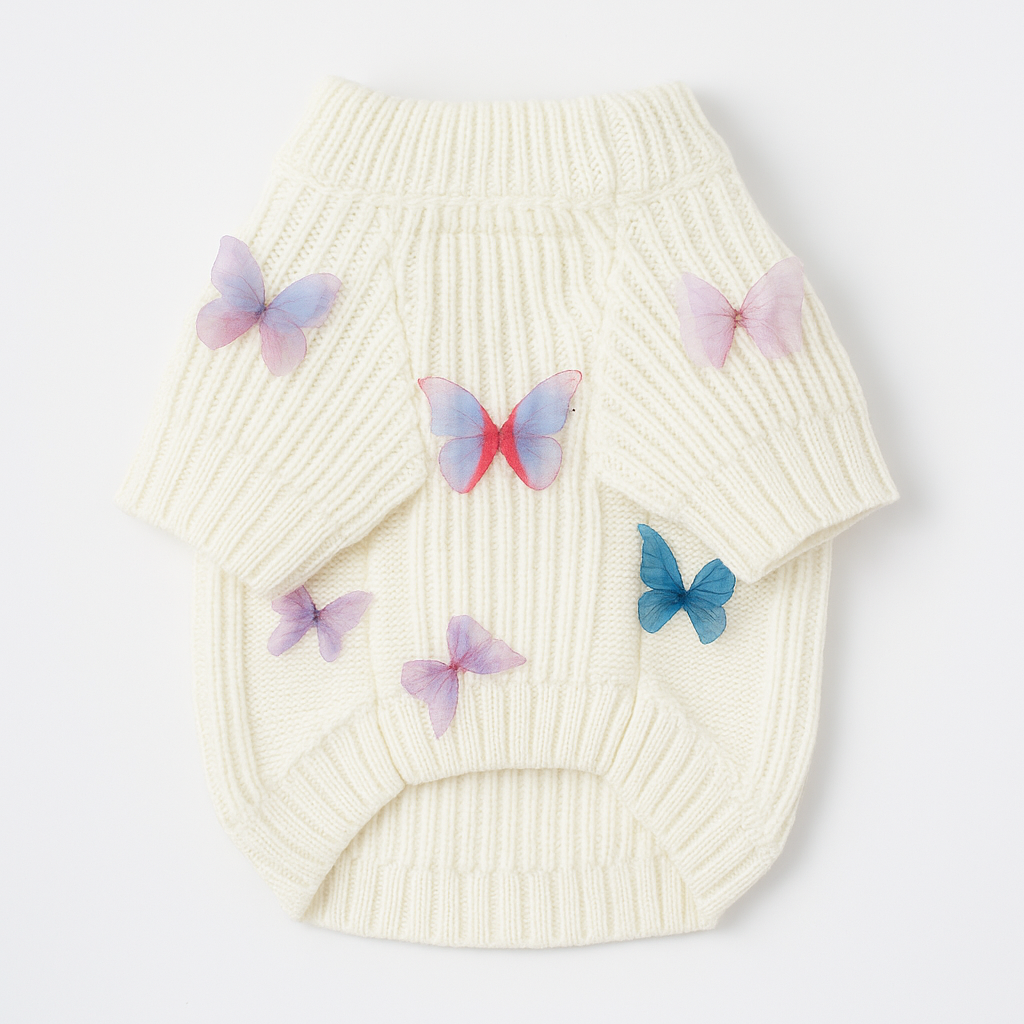 Sweeten up your pup’s look with our newest cozy creation – the 3D Butterfly Icon Sweater.