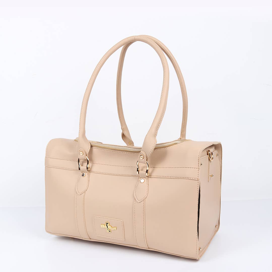 Available in 5 beautiful colors that feature side mesh window and pocket, a tether for safety, and a luxurious faux fur mat to give your pup the extra comfort. With a double zipper this carrier is airline approved.
