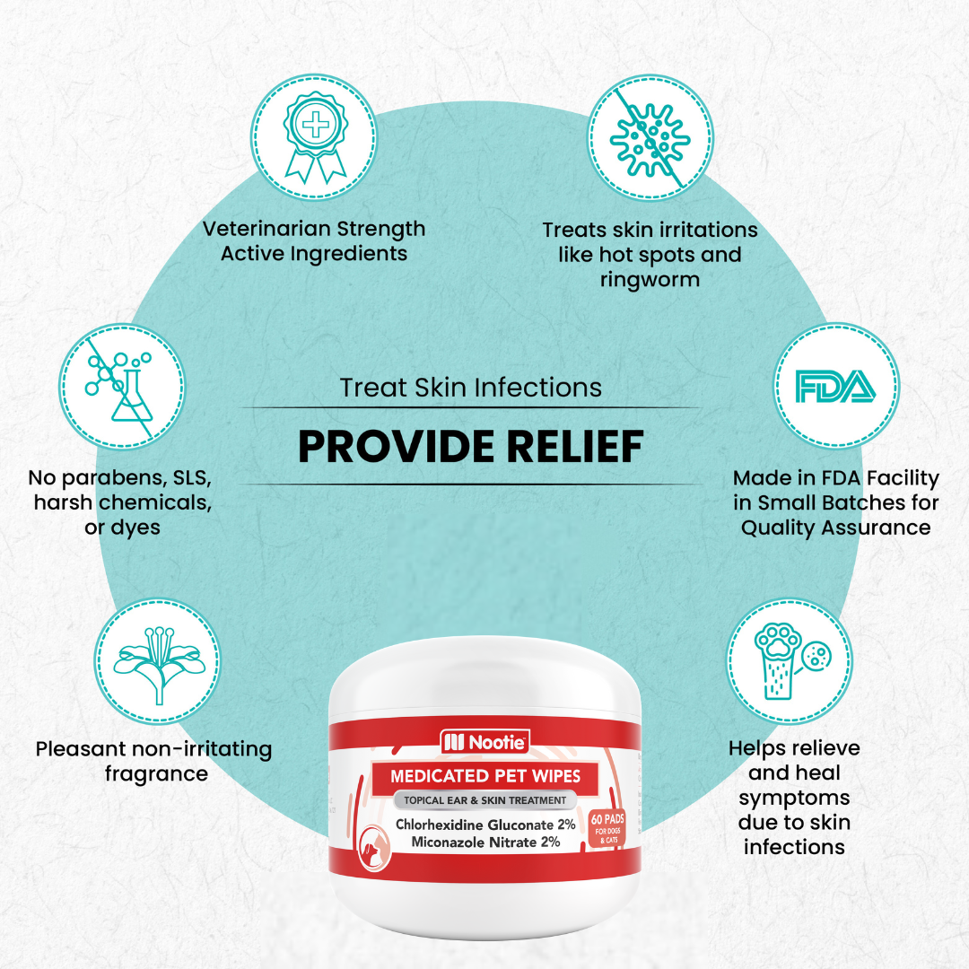 - Key Features: Veterinarian-strength wipes with 2% Chlorhexidine Gluconate and 2% Miconazole Nitrate to fight skin infections. (Nootie)