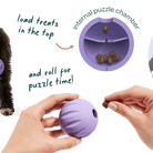 - Puzzle Mode: Open the top hole, drop in treats, shake to distribute, then let your dog nudge and roll the ball to release the rewards — great for mental stimulation.