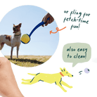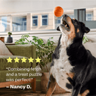 Meet Flyball — the ultimate 2-in-1 interactive toy that combines a treat dispenser, mental enrichment game, and classic fetch ball all in one.