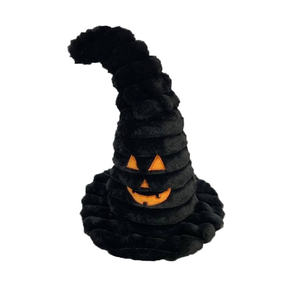 * 15" witch hat-shaped dog toy with a spooky face.