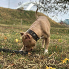 The inner side features a soft leather decoration out of turned pig skin. Although soft and thin, this leather is very durable and comfortable on your dog`s neck.