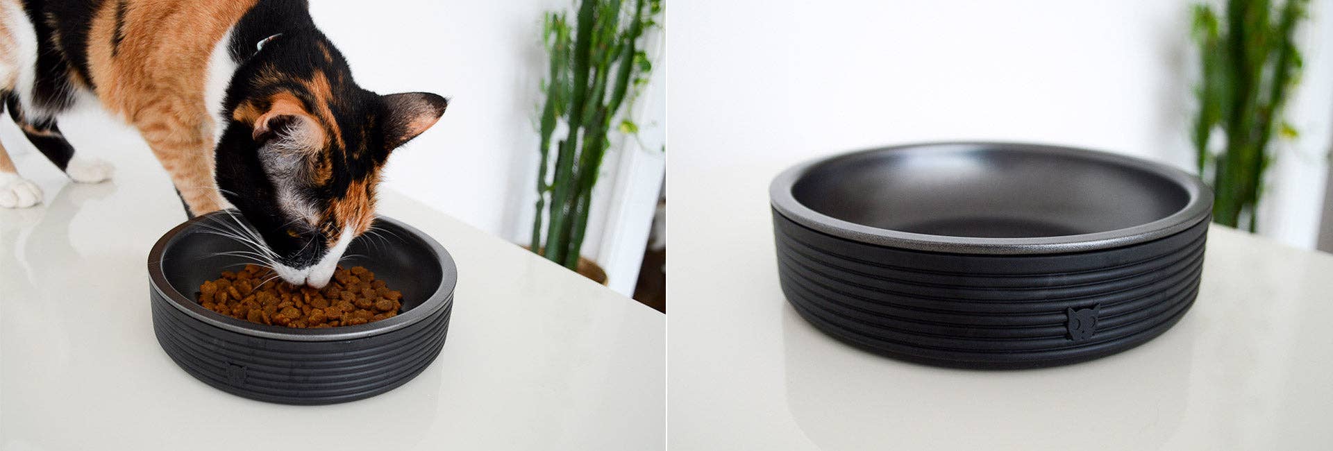 The Duo Bowl was designed to enhance your cat's meal experience. This whisker-friendly cat bowl has a non-stick dish that's dishwasher safe (top rack) and has a rubber base that keeps the bowl from slipping when being used.