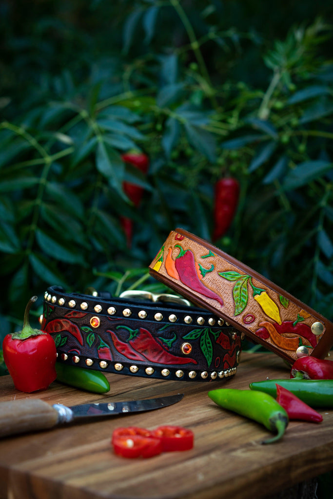 These collars are muy caliente! The Chili Peppers look good enough to eat! Grab the matching leash in Black.