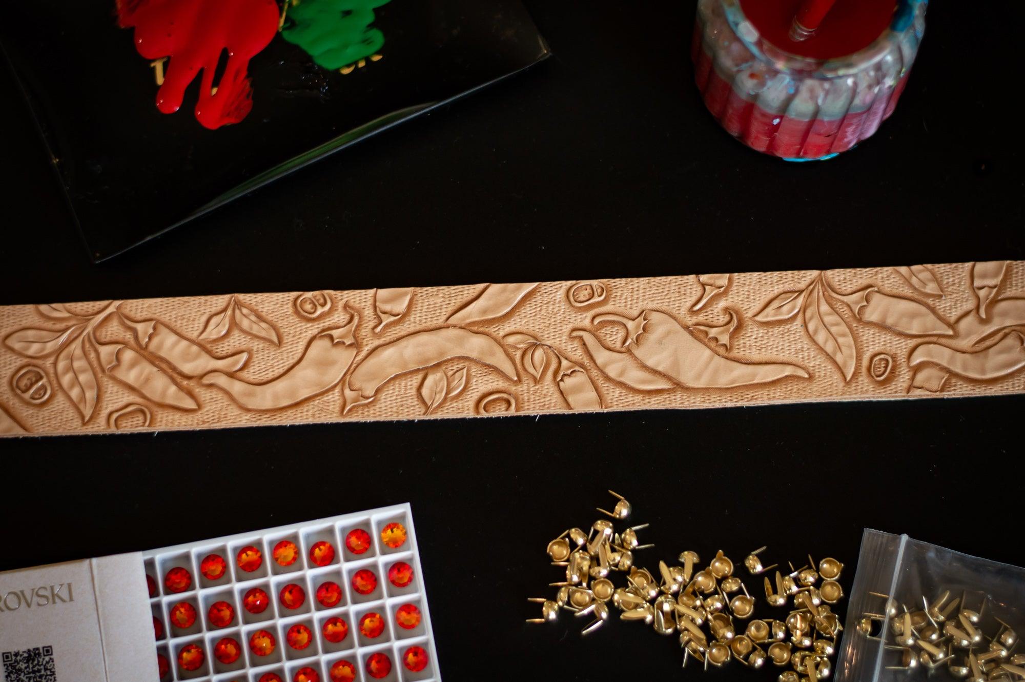 Your KoKoLati collar will begin it's journey as a hide of premium leather in our workshop. From there, your collar will be brought to life through skilled hands and many hours of labor and love. From hand burnishing the edges for a smooth finish to carefully painting each detail - we spare no effort in the creation of your pet's keepsake.