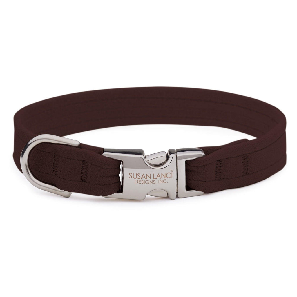 This collar has a premium look and feel, while being easy for you to maintain. Made from Ultrasuede® fabric with the soft texture and feel of premium suede. Ultrasuede® offers the highest grade of durability, making this collar resistant to stains and discoloration, it is even machine washable! This collar captures effortless convenience in fastening with a quick-release buckle, please note this feature has no adjustments so take care to make accurate measurements in finding the perfect fit for your dog. We recommend your dog should always be walked with a harness. Our collars are designed for ID tags, charms and for decoration, they are NOT designed for pulling dogs. Collar width is ½”. Manufactured in the USA