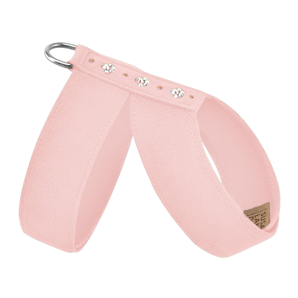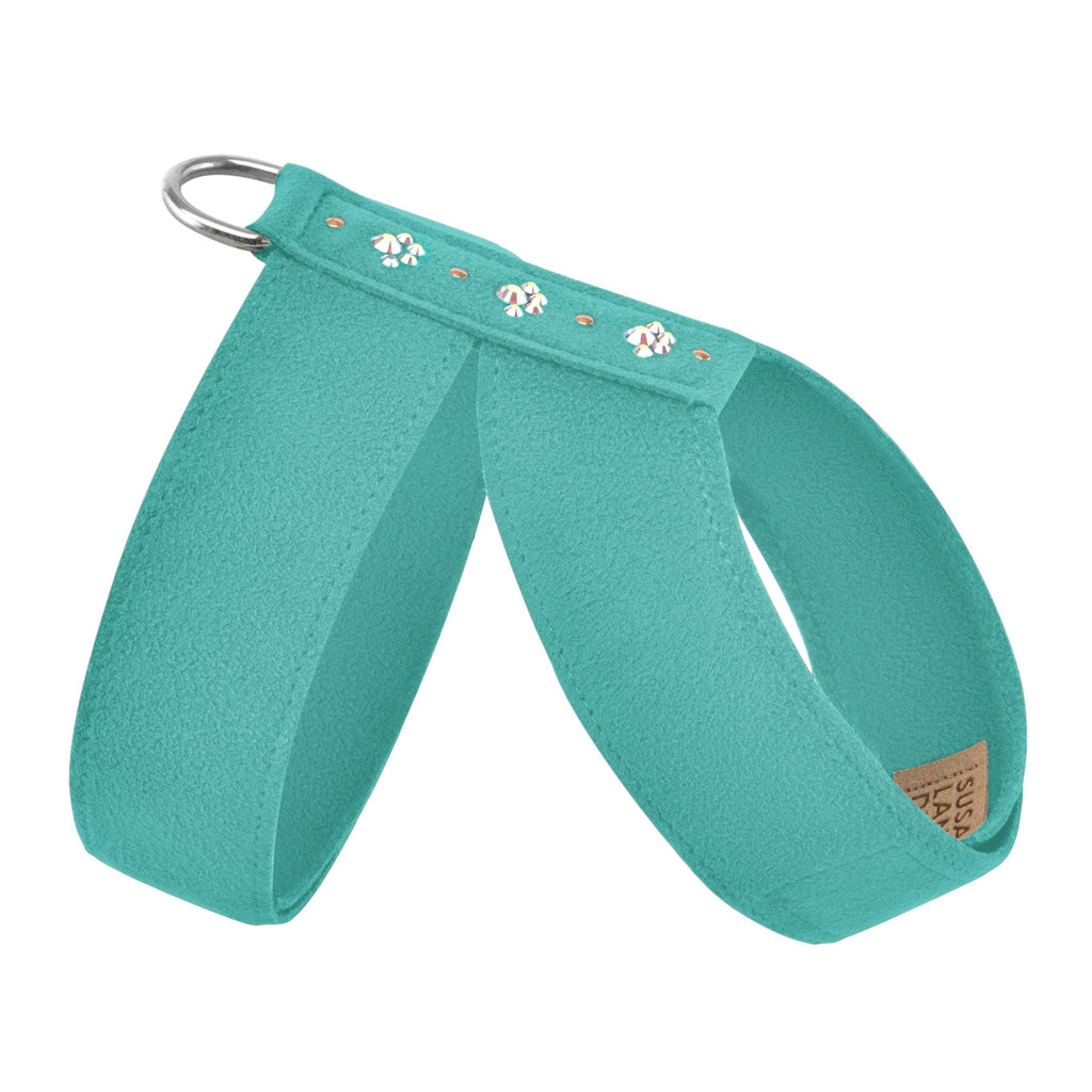 This harness' elegant design offers a glamorous look while being comfortable for your dog and easy for you to maintain. Made from Ultrasuede® fabric with the soft texture and feel of premium suede. Ultrasuede® also has the highest grade of durability, making this harness resistant to stains and discoloration, it is even machine washable! Crystal Paws are dainty little paw prints made with only the finest Swarovski Crystals®. Any pulling is across the shoulders and not the neck, resulting in pure comfort for your dog. Hook-and-loop closures make for a no-fuss, secure fit. Manufactured in the USA