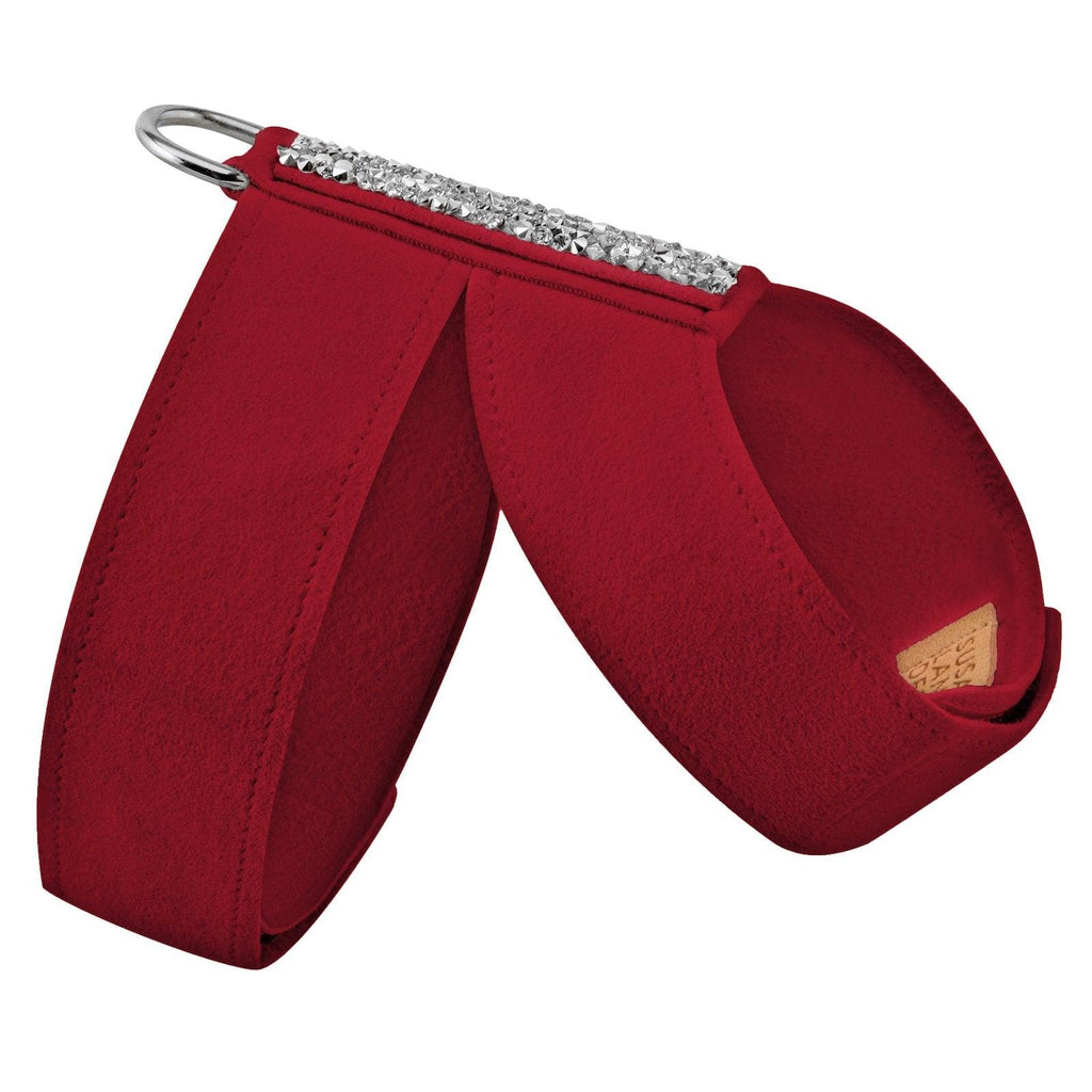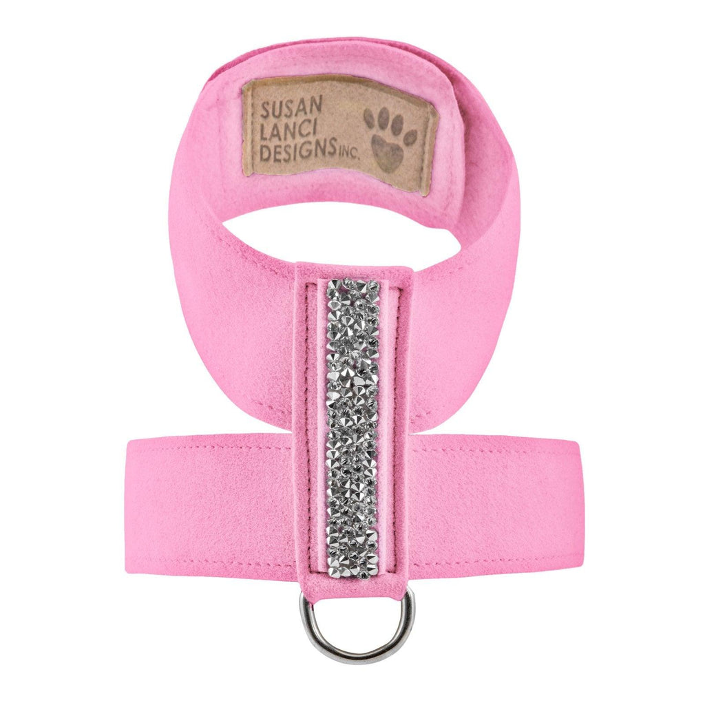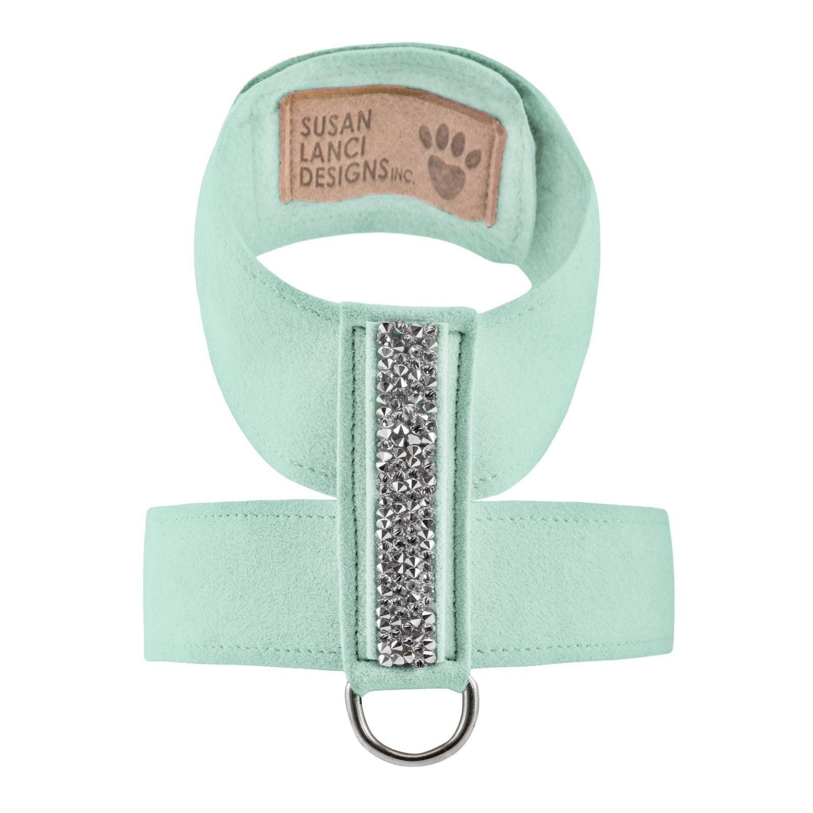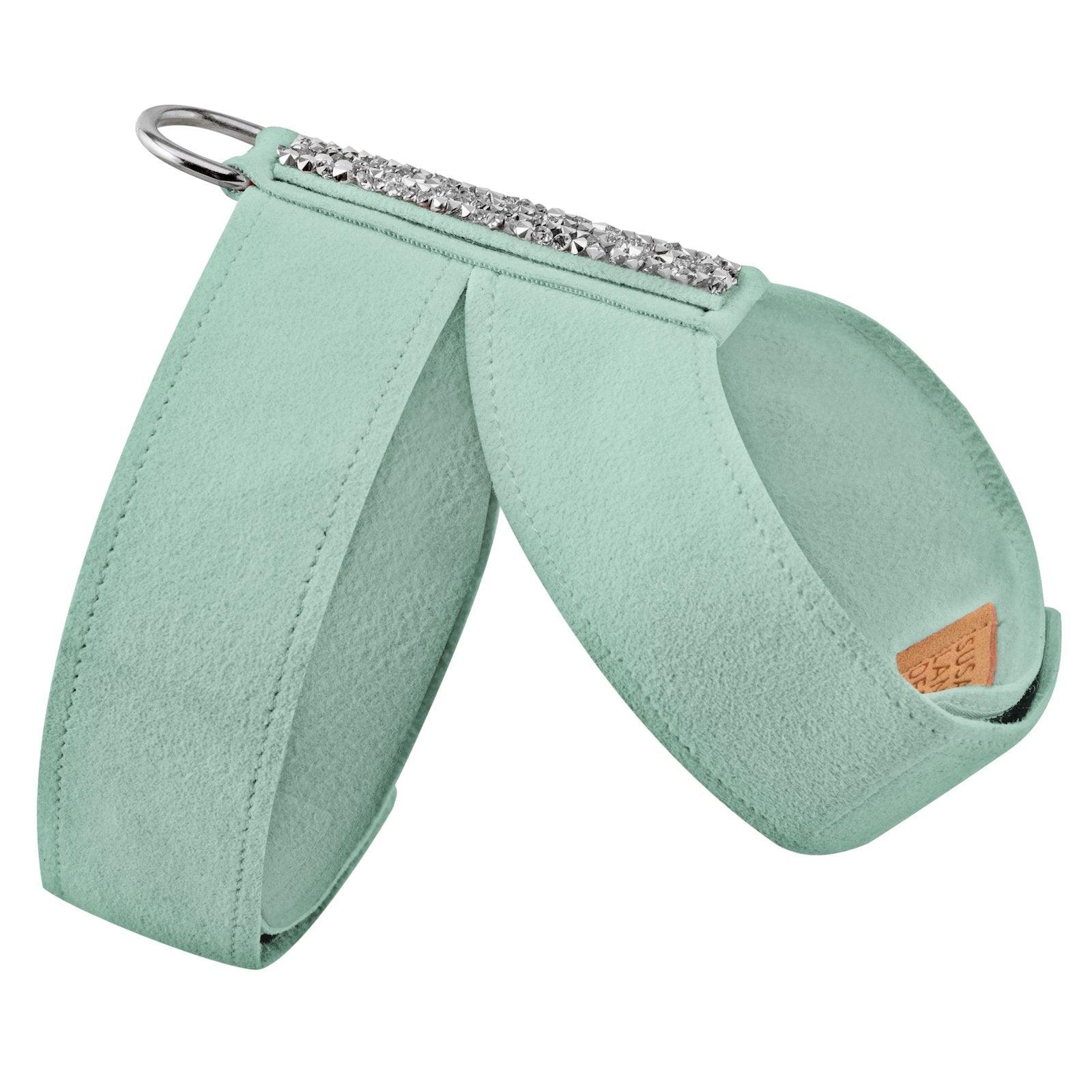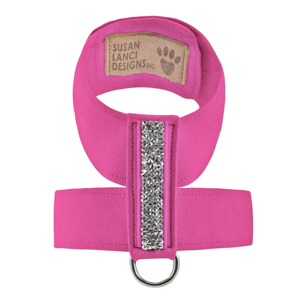 This harness' elegant design offers a glamorous look while being comfortable for your dog and easy for you to maintain. Made from Ultrasuede® fabric with the soft texture and feel of premium suede. Ultrasuede® also has the highest grade of durability, making this harness resistant to stains and discoloration, it is even machine washable! Any pulling is across the shoulders and not the neck, resulting in pure comfort for your dog. The Crystal Rocks are a bold new style of Swarovski Crystals® that cluster like a bouquet of dazzling laser-cut diamonds. Hook-and-loop closures make for a no-fuss, secure fit. Manufactured in the USA