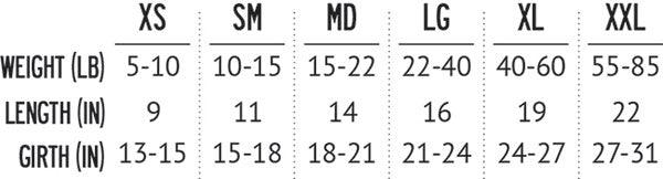 Available in sizes XS-XXL for dogs 5 to 80 lbs.