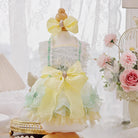 Handmade Cute Dog Dress Yellow Lace Bowknot Outfit