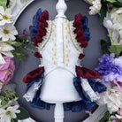 Dress your pet like royalty with this luxury dog dress in rich red and navy tones. Featuring delicate lace ruffles, gold embroidery, and a large jeweled bow adorned with pearls, this outfit captures a regal, timeless elegance. Perfect for weddings, birthdays, and photoshoots, it ensures your furry friend shines in every moment.