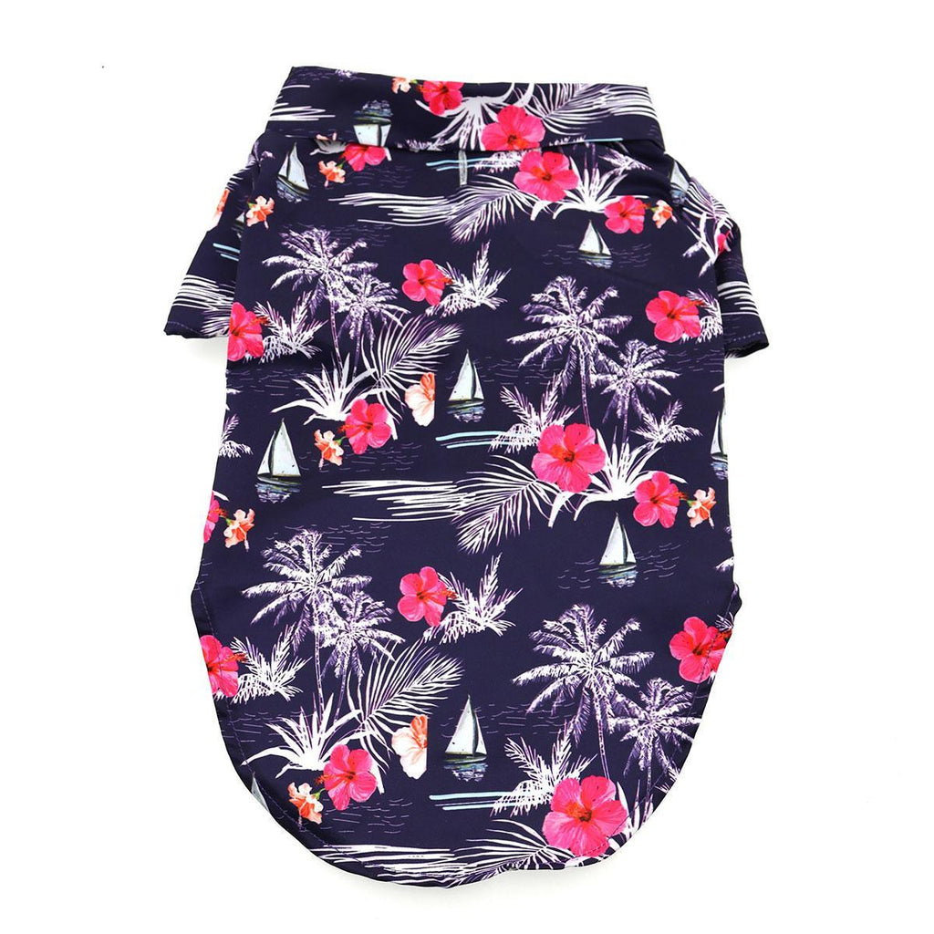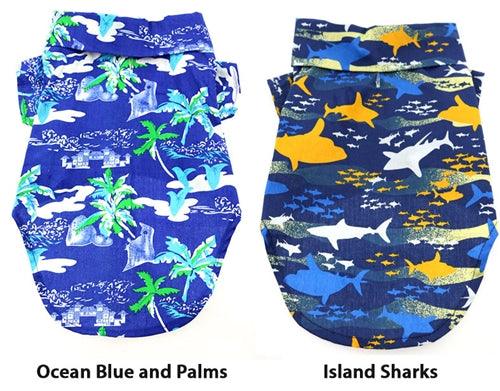 Let your pet showcase their fun side with our Island Sharks Hawaiian Camp Shirt. Crafted from 100% cotton, this shirt ensures comfort while maintaining a vibrant look, complete with a leash hole for convenience on the go.