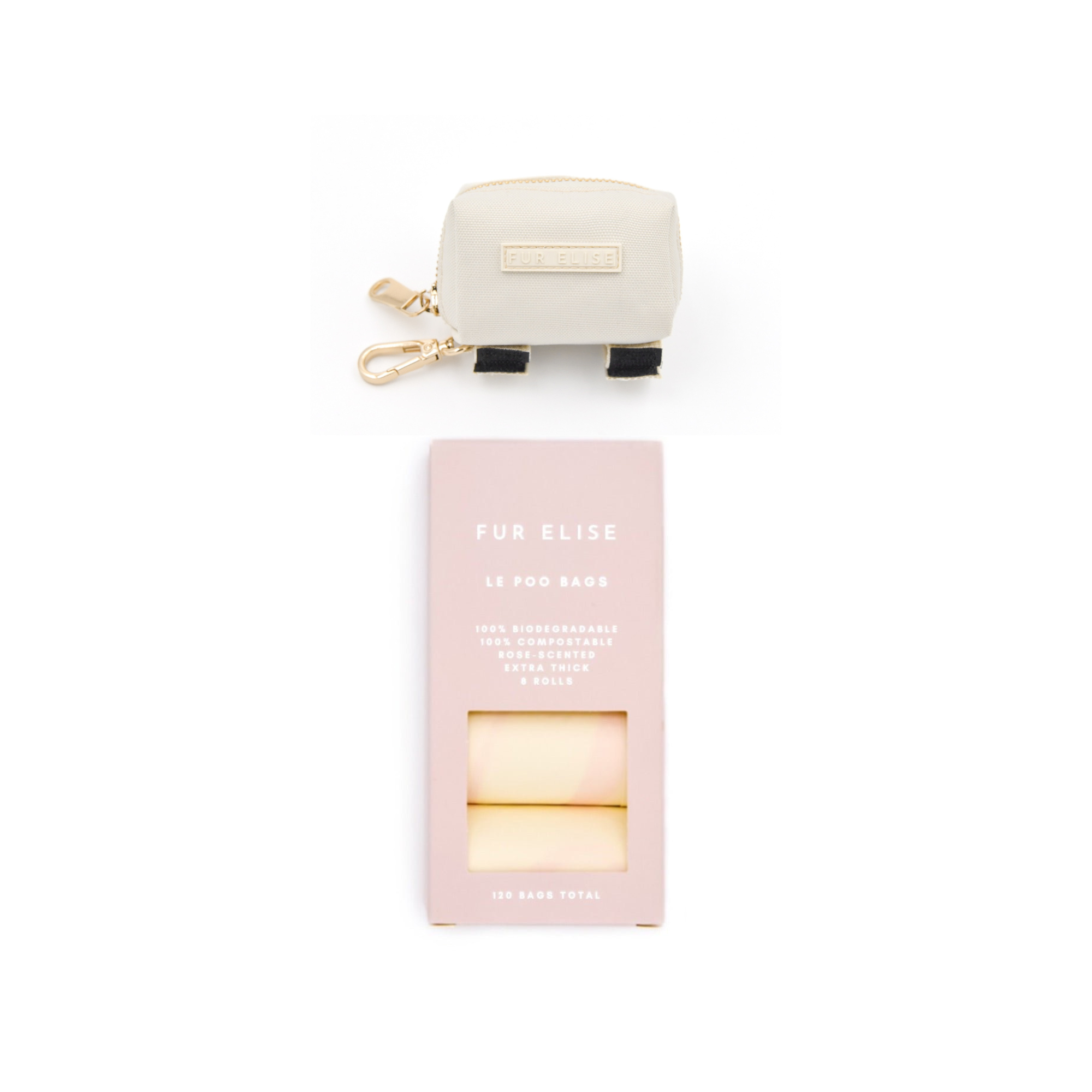 Never worry about picking up after your pup again with our Le Poo Bundle. The bundle includes our rose-scented Le Poo Bags, made with cornstarch for eco-friendly disposal. Each box comes with 8 rolls for 120 bags total. Also included is our Le Poo Pouch, crafted from durable Oxford fabric, making it resistant to dirt and water. With dual attachment points and space for two rolls of bags, this stylish accessory guarantees a mess-free and convenient walk every time. Keep your pup's dognity intact and enjoy the scent of roses while you tackle the dirty work.