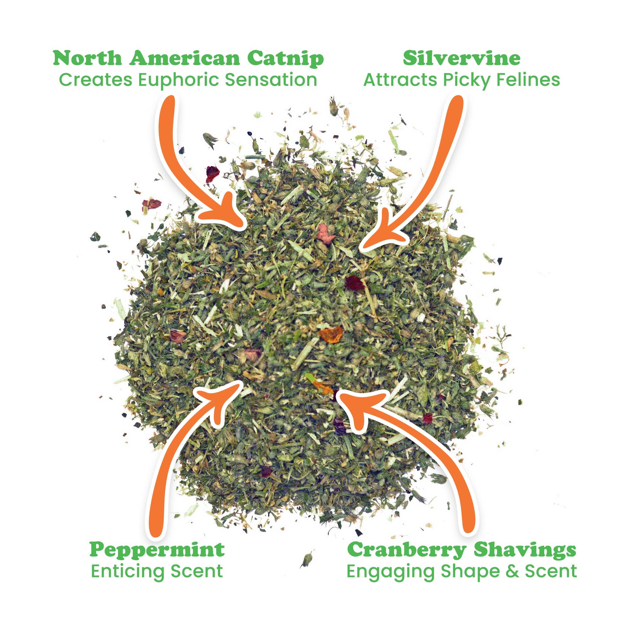 Help your kitty shake off the winter blues with Santa's Secret Stash, the perfect festive treat to enchant your feline friend! Meowijuana® Catnip filled Candy Cane is packed with a delightful winter-themed blend of Peppermint, Cranberry, Silvervine, and premium North American Catnip. This unique and magical mix will bring out the playful kitten in your cat, ensuring endless entertainment and providing the stimulation they crave. The aromatic blend of herbs is designed to ca