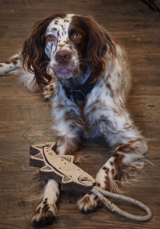Natural Leather Trout Tug Dog Toy from Tall Tails