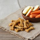 Our Apple Carrot Bones combine superfood ingredients that support your dog’s health with every chew. Carrots provide natural beta-carotene for vision support, applesauce adds gentle sweetness and fiber, and oats help promote healthy digestion. Coconut oil boosts skin and coat health, while crushed peanuts add protein and crunch.