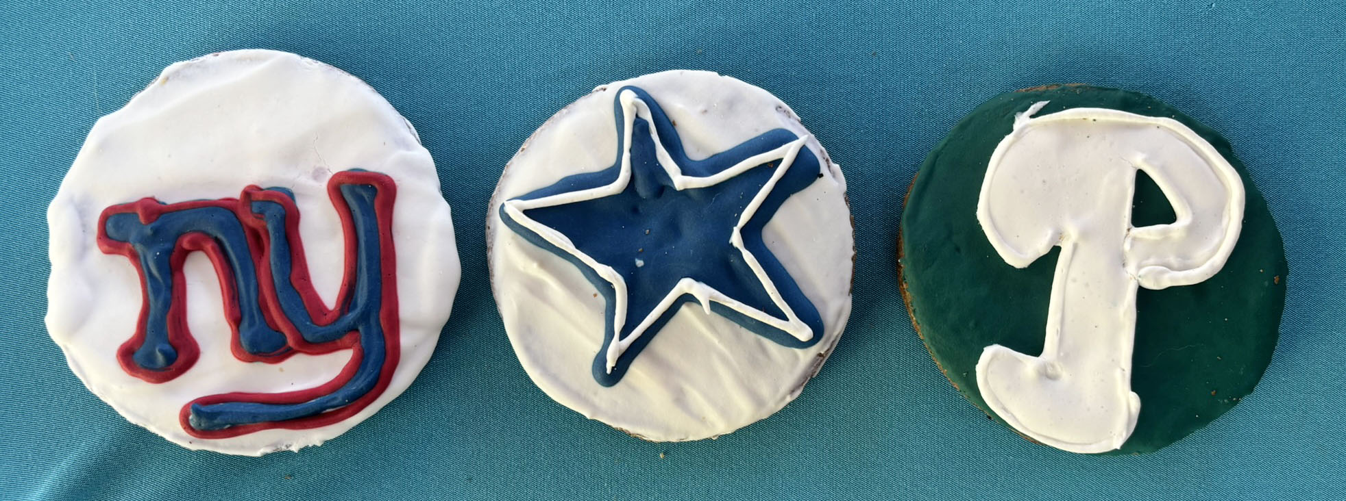 Show off your team spirit with our Football Sports Team Cookies, baked fresh for tail-wagging fans of the Philadelphia Eagles, Dallas Cowboys, and New York Giants!