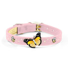 This collar has a premium look and feel, while being easy for you to maintain. Made from Ultrasuede® fabric with the soft texture and feel of premium suede. Ultrasuede® offers the highest grade of durability, making this collar resistant to stains and discoloration, it is even machine washable! Enchanting embroidered Butterflies and Bees dazzle with a flurry of intricately placed Swarovski Crystals®. We recommend your dog should always be walked with a harness. Our collars are designed for ID tags, charms and for decoration, they are NOT designed for pulling dogs. Collar width is ½”. Manufactured in the USA