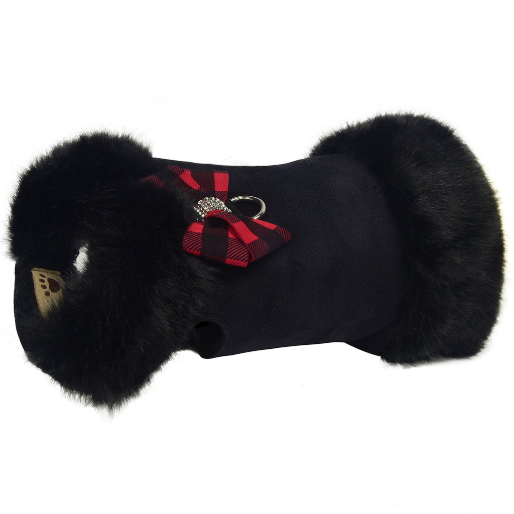 Smile! It’s Gingham style. Your pup will be looking oh so pawsh in this winter coat! Complete with fluffy faux fur lining and our signature Nouveau bow, the underbelly hook-and-loop closure makes this coat a easy piece to throw on for colder nights. Made from luxe suede. It is completely washable. Luxe suede stands the test of time. The Red Gingham Nouveau bow captures all attention with bold curves embraced by rows of gleaming Swarovski Crystals®. Attach your favorite leash to make this coat fashionable and functional. Manufactured in the USA.