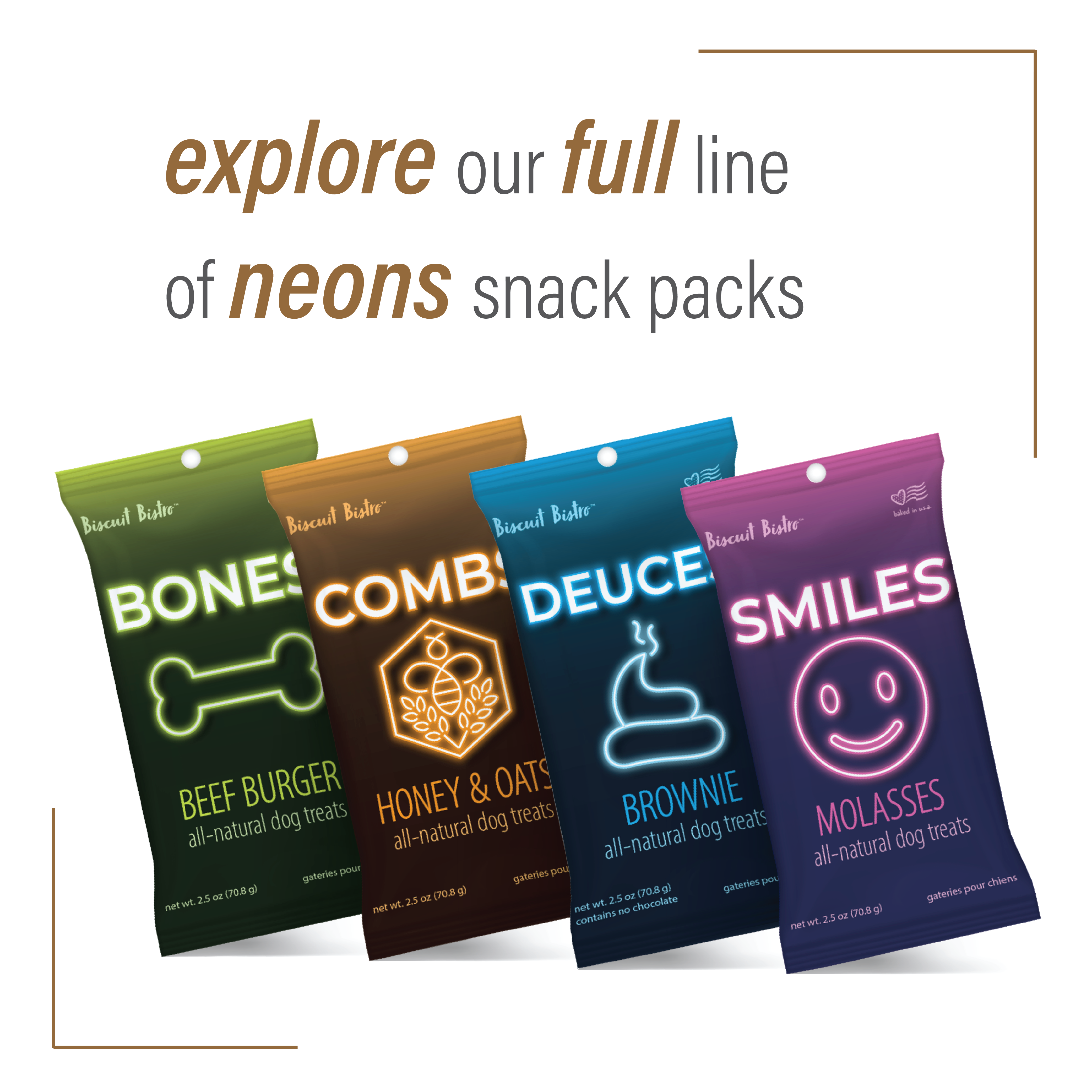 We now offer grab-and-go size pouches of our most popular treats in the form of snack packs! Great to use as a training treat or to keep in your bag or car. Made with the same great all-natural ingredients and made right here in America, they can’t be beaten.