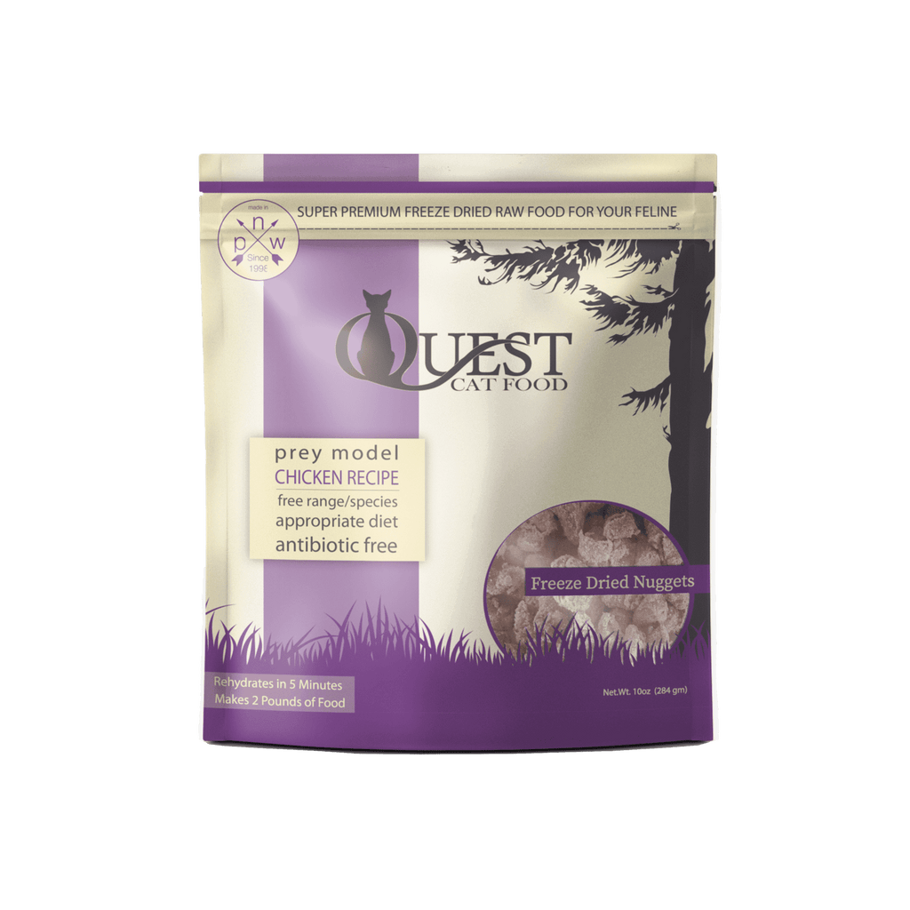 Steve's Real Food Quest Freeze-Dried Raw Cat Food retains the full spectrum of essential nutrients and flavors found in our frozen raw diets, while making mealtime convenient for both you and your pet. Each bite is bursting with the natural goodness of carefully selected meats and fresh produce, offering a balanced and complete diet for your feline companion.