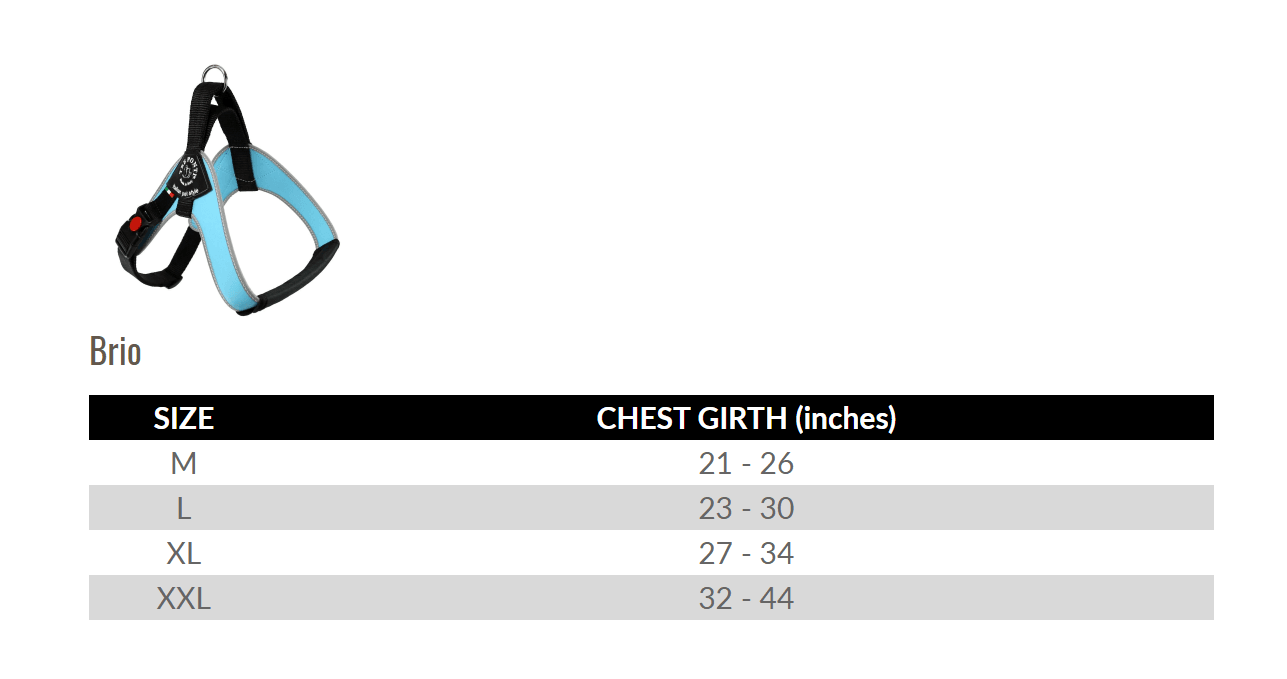 - Colors: Available in a variety of vibrant colors, you can choose the Brio Harness that best suits your dog's personality and style.
