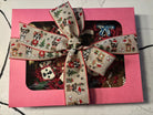 Your cookies arrive in a charming pink bakery gift box (15" x 11.5" x 2"), nestled in colorful raffia and tied with a puppy-themed Christmas ribbon — ready to gift or place under the tree!